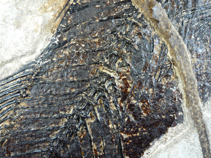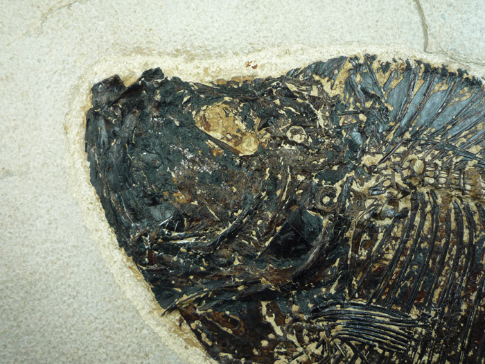 Descripción: pez fósil , depredador, pez fósil prehistórico